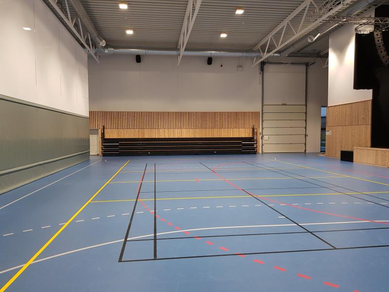 Hallen kan delast i tre med skilleveggar, og fleire "støysvake" aktivitetar kan gå føre seg samtidig. Dette blir vurdert i kvart tilfelle.