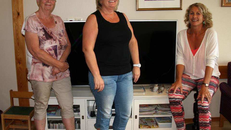Fekk TV av Saniteten Tidleg i haust fekk Bokn sjukestove fjernsyn av Bokn sanitetsforening. Bilde: Fornøgde framfor TV'en - fv. Inger Sønnøve Bokneberg, Grethe E. Heimvik ... Publisert 28.09.2015 kl. 09.37