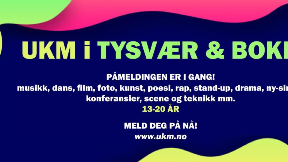 UKM Påmeldinga til årets UKM (Ung Kultur Møtes) i Tysværtunet kulturhus 14. februar har starta. Frist: 10. februar. Publisert 06.01.2020 kl. 09.53