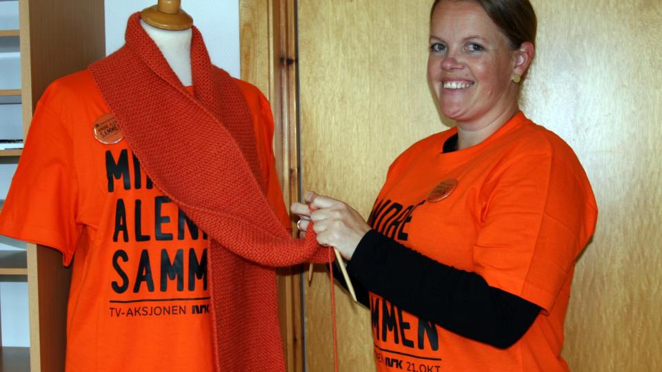 Årets strikkedugnad – oransjeskjerf I samband med årets TV-aksjon (Kirkens Bymisjon) blir heile landet oppfordra til å strikka skjerf til gatas folk og andre som slit med liva sine.Bilde... Publisert 28.08.2018 kl. 15.41