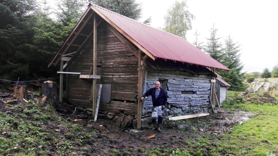 Nytt tak 10. september var det nye taket på Kårhuset på Laupland ferdig. Bilde: Lars Ove Vatnaland frå museumsstyret i Bokn er godt nøgd med taket. Publisert 21.09.2018 kl. 14.46