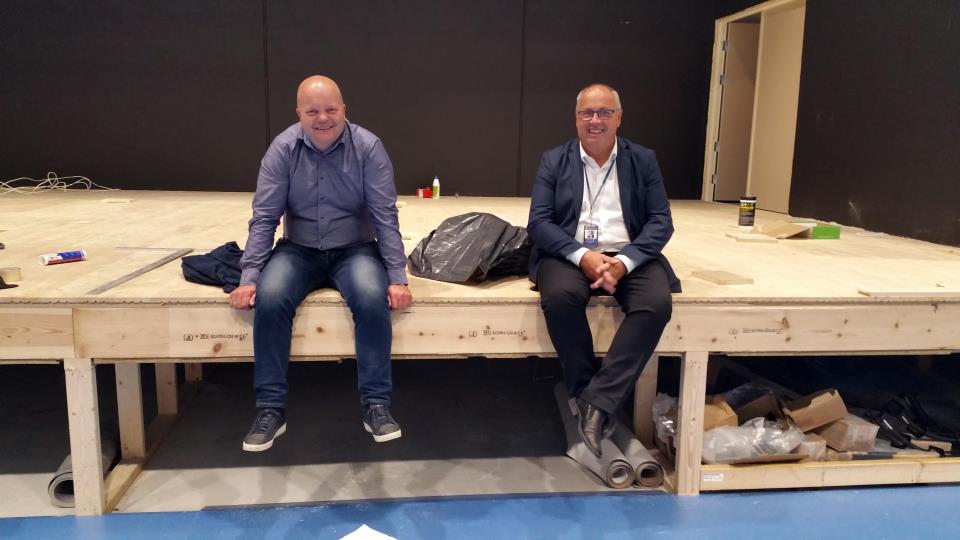 Klare konferansierar! Sitjande på scenen: Ordførar Tormod Våga (tv. på bildet) og varaordførar Lars Sigmund Alvestad skal leia programmet under opninga av Bokn Arena 1. okt... Publisert 09.09.2016 kl. 15.53