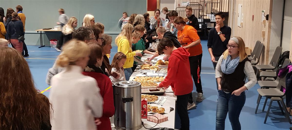 Før dette eventuelt skjer, vil elevane ved 2 500 kr. få ein kjekk klasseaktivitet. Ved 5 000 kr., vil alle elevane få heimelaga bollar, laga av Annette. Og ikkje nok med det. Det blir skulekino med popcorn ved 7 500 kr. Så her er det berre å gi – spleisen er allereie open: