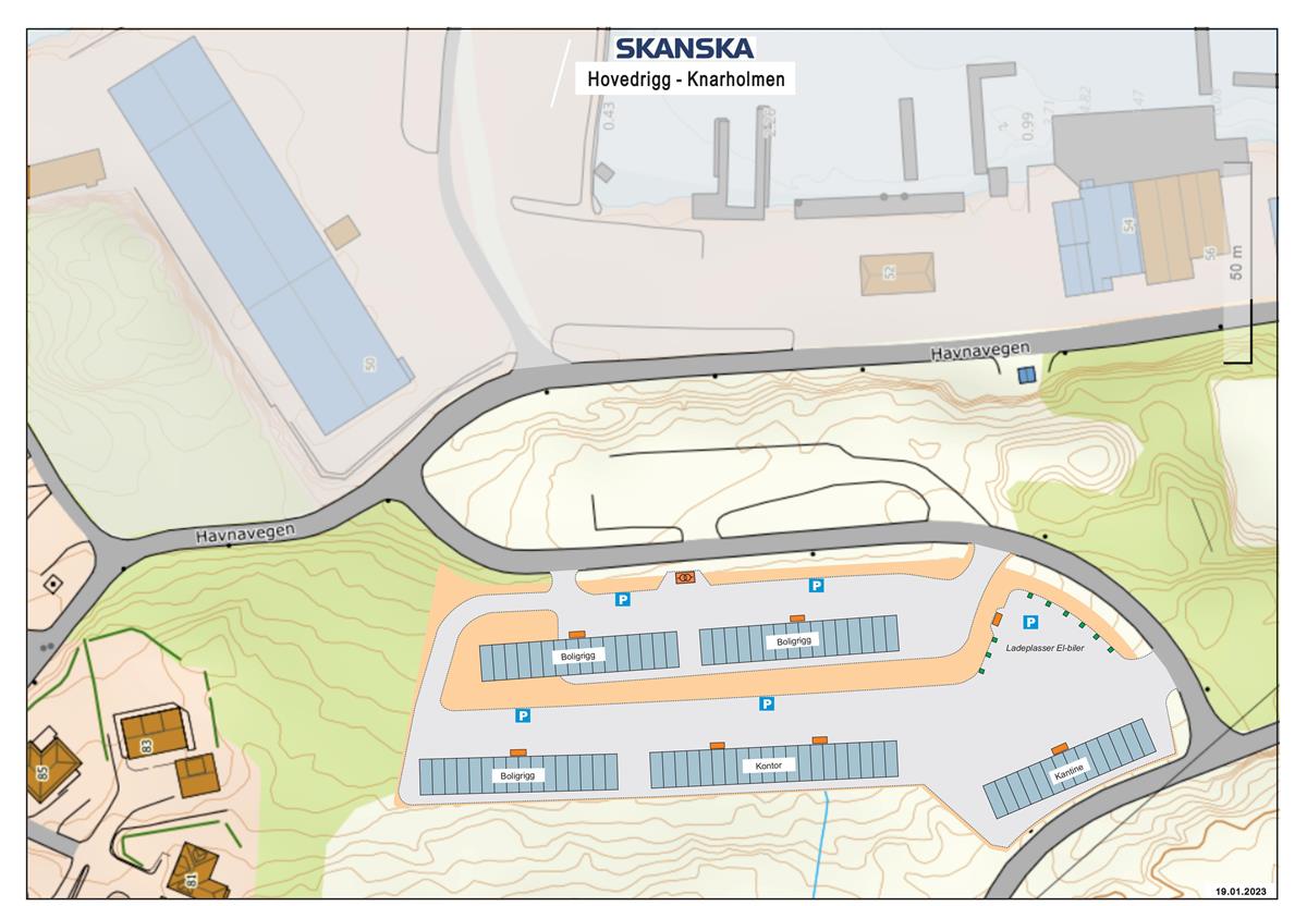 - Området skal planerast i to nivå. Det vil bli sett opp ein stor kontorrigg, ein kantinerigg og to bustadriggar i to etasjar, og det vil bli sett opp ein tredje bustadrigg hausten 2023. Når bustadriggane er fullbooka, vil det på det meste bu om lag 130 personer i brakkeriggen, fortel prosjektsjef i Skanska, Anne Brit Moen.