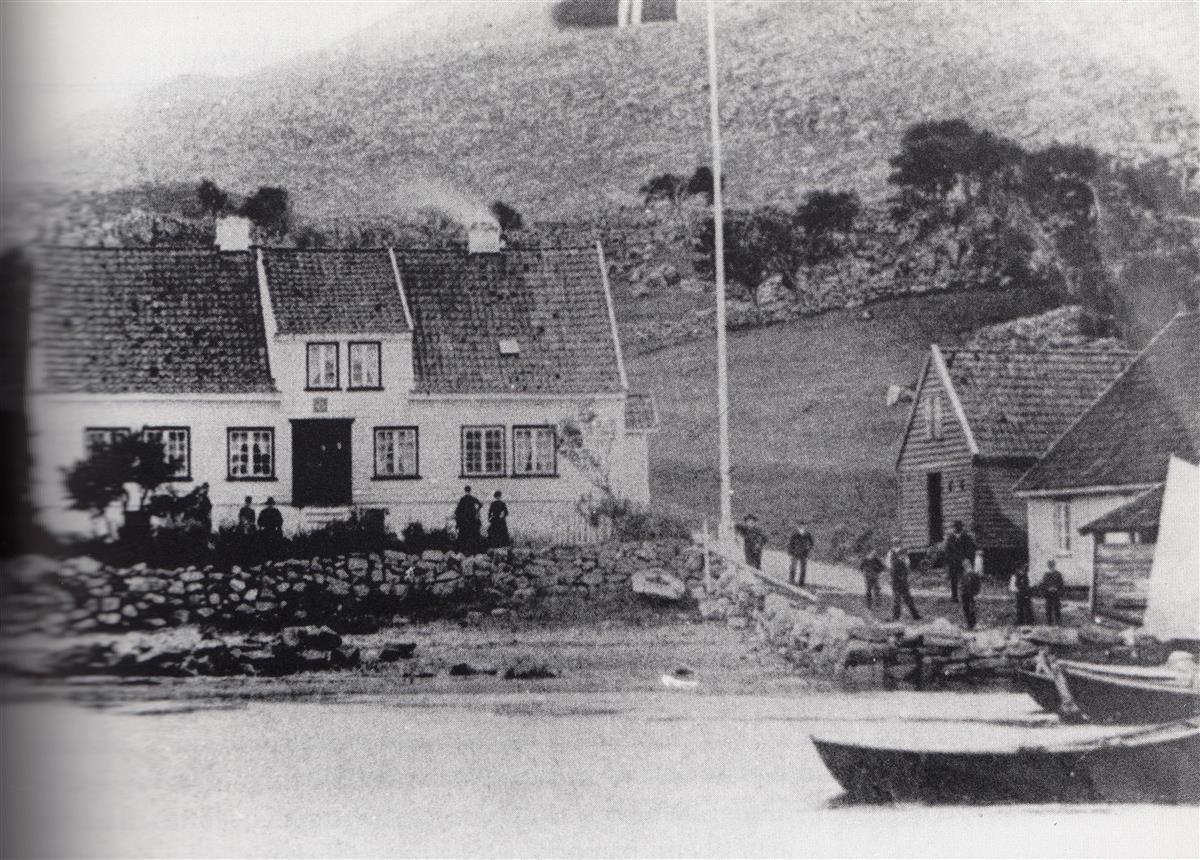 Andreas Hansen i Åkrahamn. Tidleg fredag morgon drog eit lite fylgje boknarar: Torbjørn Larsson Nerabø, Ingebret Laupland, Torkel Jonsson Vatnaland og Lars Nilsson Sæbø mot Kopervik. Sidan var det å traska langs gangstigen over til Åkra, køyreveg fanst framleis ikkje her.