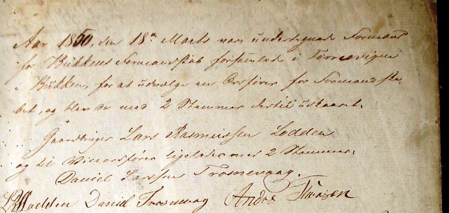 Som ordførar peika dei ut Lars Rasmusson Loden og til varaordførar Daniel Trosnavåg. Lars kom frå ein sær gåverik familie frå Loden. Foreldra var rennesøybuen Rasmus Hanasand og Berta Serina Roaldsdotter frå Loden. Dei gifta seg i 1812 og fekk fram til i 1830 seks born, fire gutar og to jenter. Rasmus og Berta Serina delte sidan, kring 1840, Loden i tri mellom Hans, Lars og Roald.