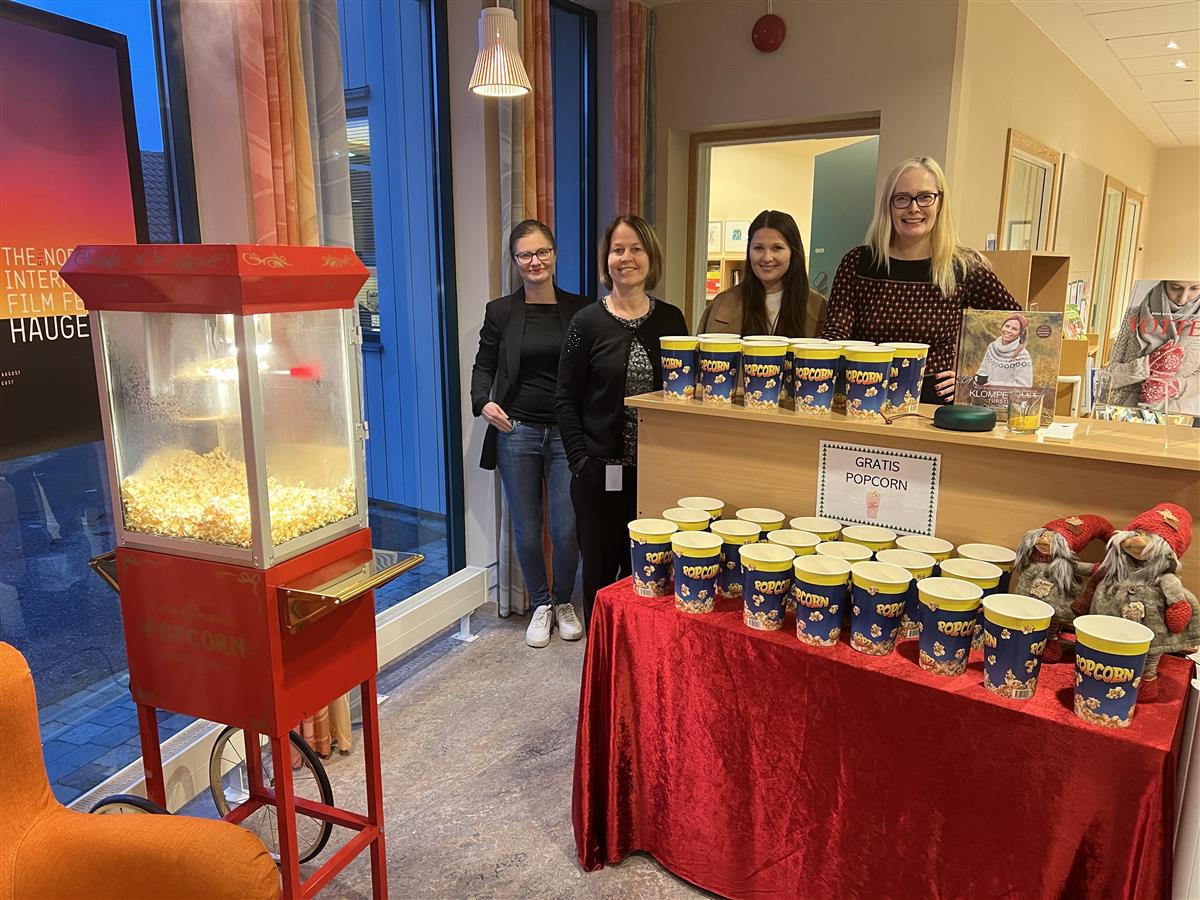 Frå høgre: Filmfestivalsjef Tonje hardersen, administrativ leiar Nina Samdal, biblioteksjef Astrid Mannsåker og kommunedirektør Ingeborg Skjølingstad.