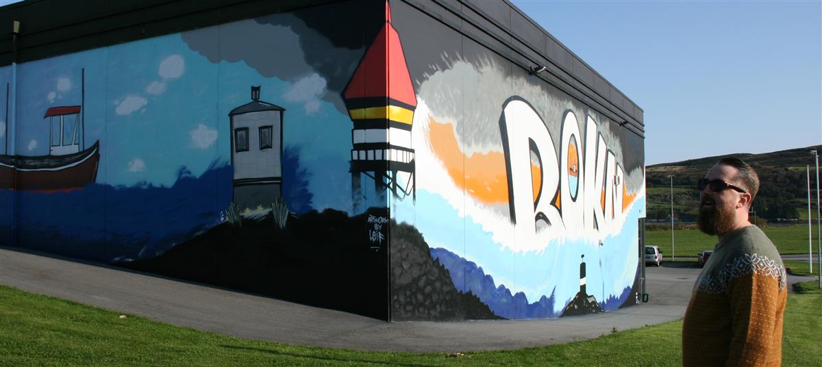Leif Stian Nes blei då fortalt at han stod fritt i dekoreringa av sørveggen ut i frå temaet, og at vestsida måtte innehalda båtar og traktorar.
