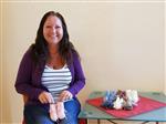 16. august var strikkedama på Boknatun med ein ny leveranse til helsesøster Henriette Lindanger, som er svært begeistra for produkta.