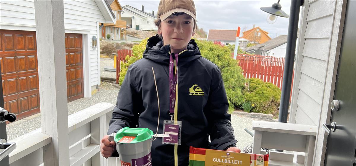 Kaspian Sæbø fekk gullbilletten i år, som ligg tilfeldig i eit hus. Gullbilletten gir sjokolade😊 til bøsseberaren.