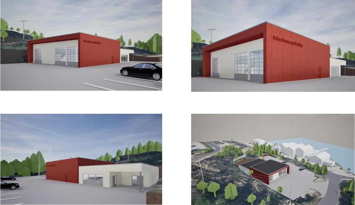 Han fortel at den ca. 600 m2 nye brannstasjonen vil innehalda vognhall med verkstad, garderobar for dame og herre med rein og urein sone, vaskehall, møterom (kantine/debriefing) og trimrom.