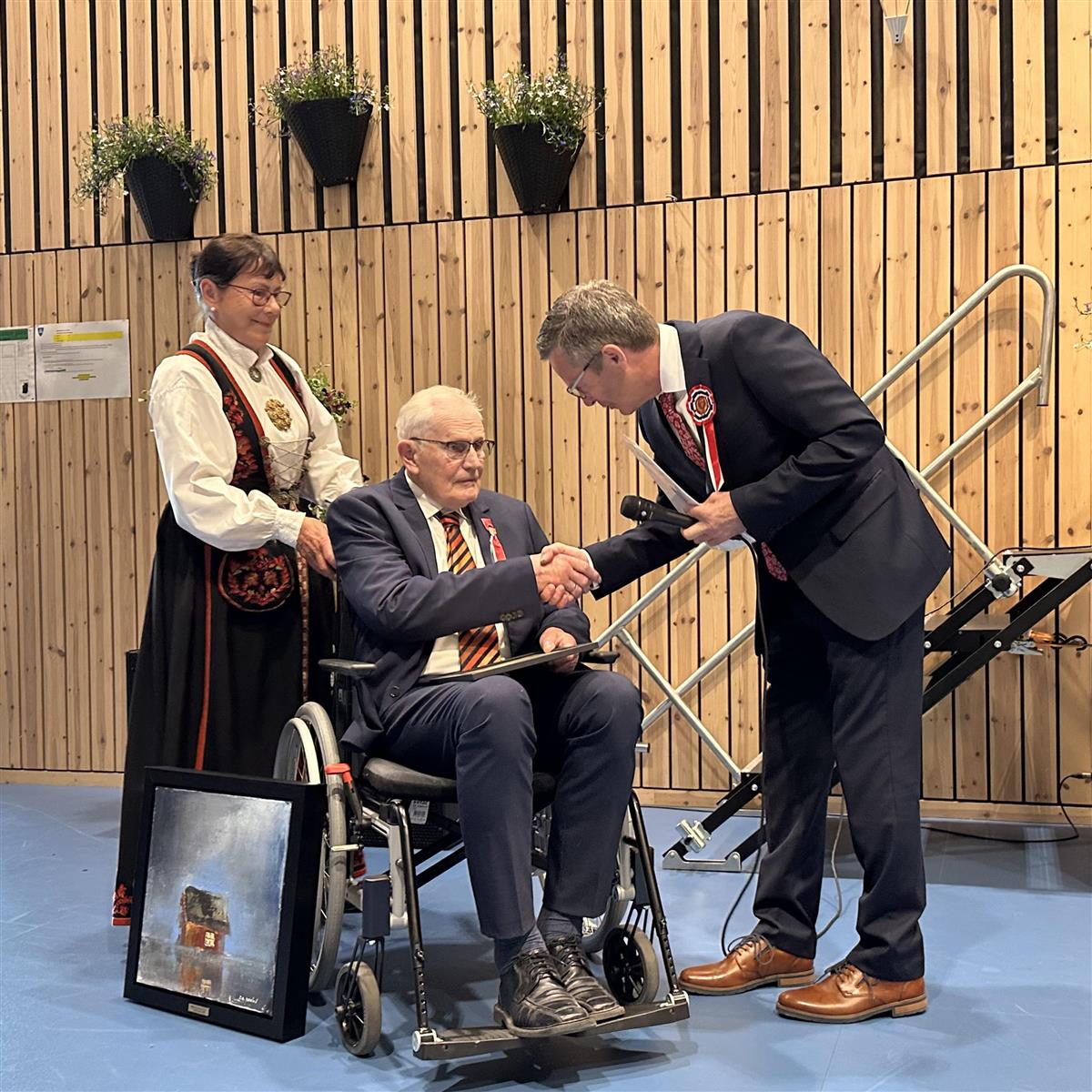 Olav G. Larsen og Kari Christensen mottok Bokn kommune sin kulturpris 2023 av ordførar Egil Våge under årets nasjonaldagsfeiring i Bokn Arena.
