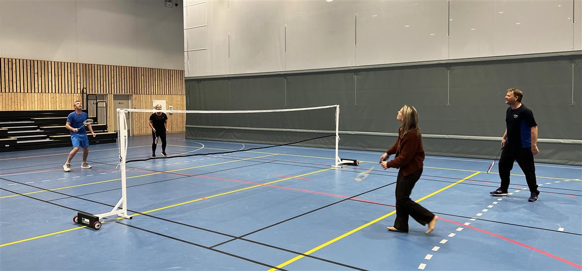 Dette gjeld alt frå barneselskap til idrettsaktivitar som t.d. ulike ballspel, innebandy eller badminton. Sistnemnde aktivitet er blant dei klassiske, og her er det nyleg kjøpt inn relevant utstyr med mobilt nettstativ, som er enkelt å setta opp.