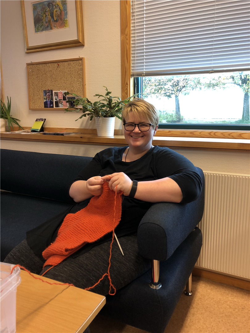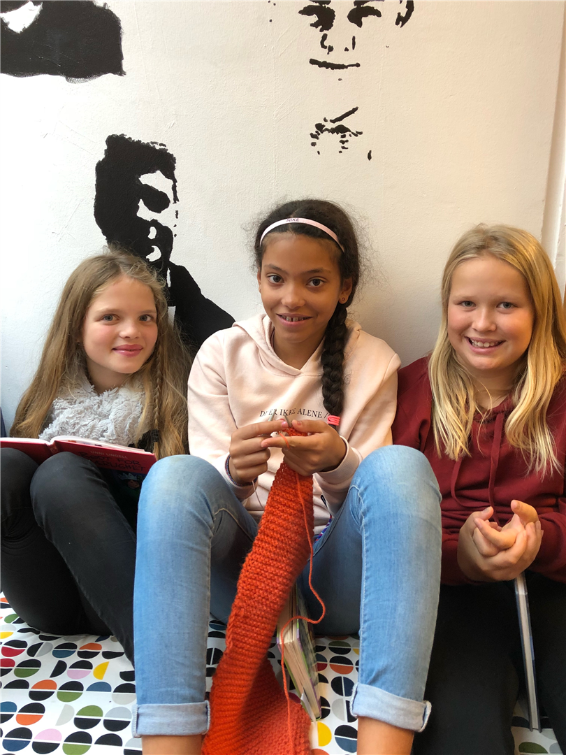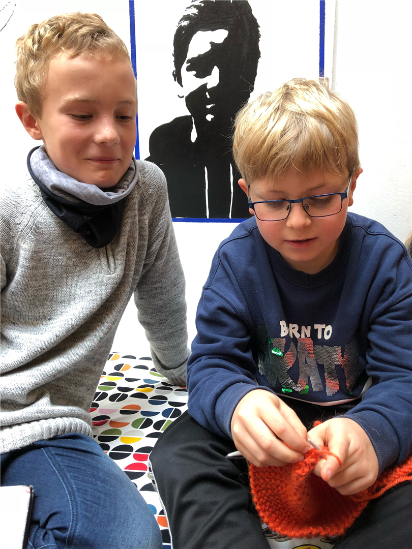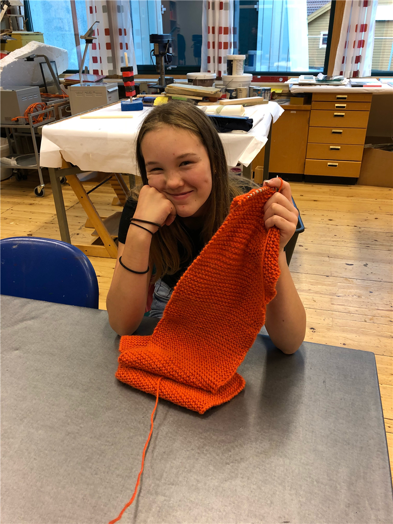 Glimt frå strikking på skulen, foto: Bianca Alvestad: