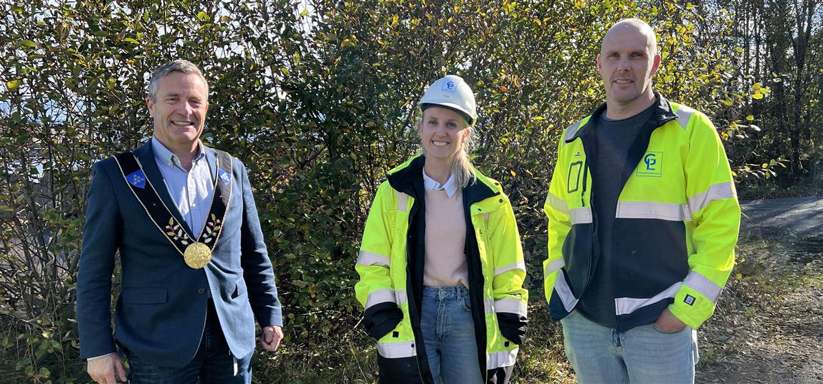 Fv. ordførar Egil Våge, prosjektleiar Stine Thuen Spissøy og byggeleiar Jan Erik Eike i GL Prosjektservice.