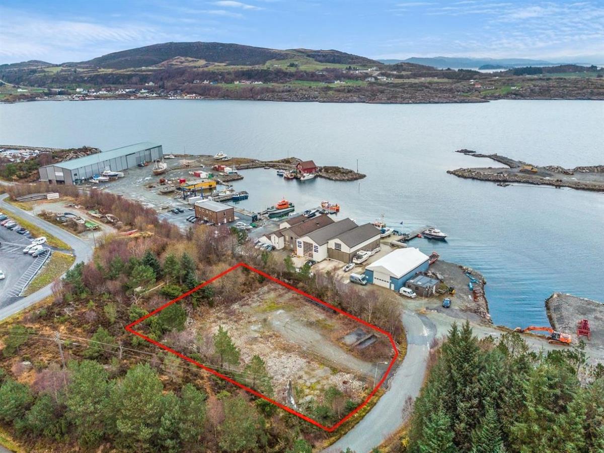 Den 2,7 mål store brannstasjontomta i Knarholmen, markert med raudt.