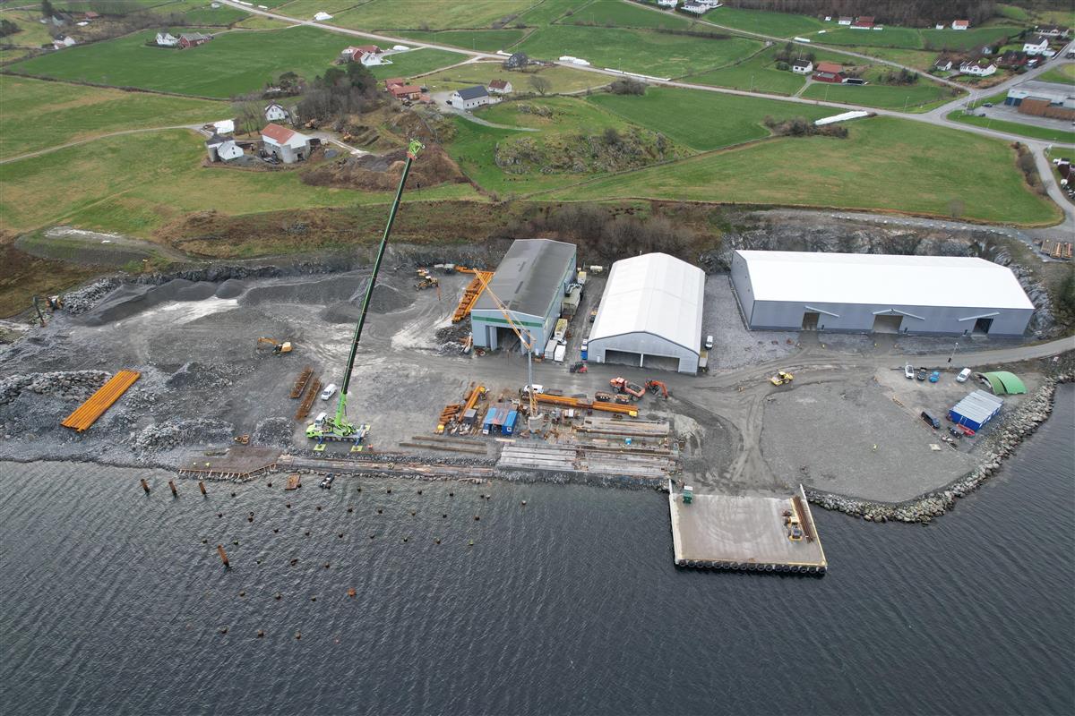 Neste veke vil det også koma ein kranlekter og ein slepebåt, som skal heisa ut betongdragarar på pelane, som er sette ned tidlegare.