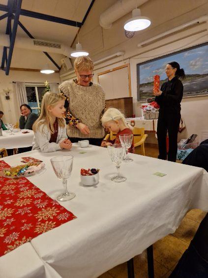 Pårørande hadde fått beskjed om å ta med seg ei umerka gåve, som i løpet av kvelden vart trekt og gitt til ein tilfeldig bebuar på sjukestova ved hjelp av loddtrekning - til stor begeistring for dei frammøtte.