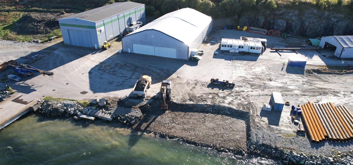 Pelinga (fundamenteringa) av ny djupvasskai i Føresvikvegen 40 (tidlegare HighComp) skal vera avslutta i dag, fredag 11. oktober.