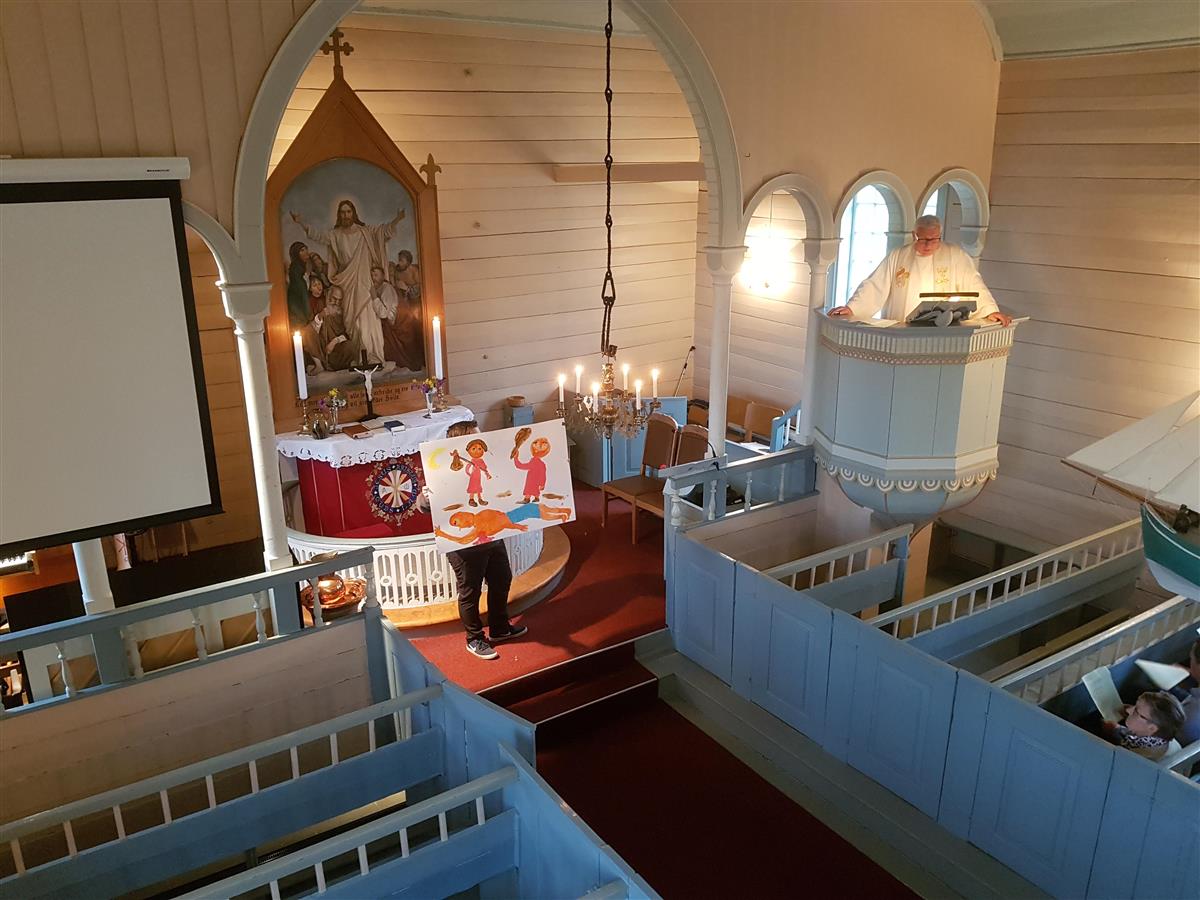 Bibelpantomime på overhøyringsgudstenesta 28. april 2019.