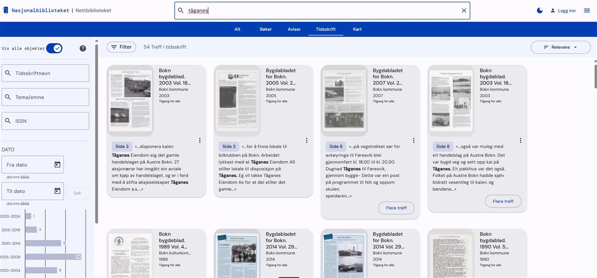 I år har det likevel skjedd det revolusjonerande at Nasjonalbiblioteket ikkje berre har lagt inn Bokn Bygdablad digitalt, dei har også gjort bladet vårt søkbart.