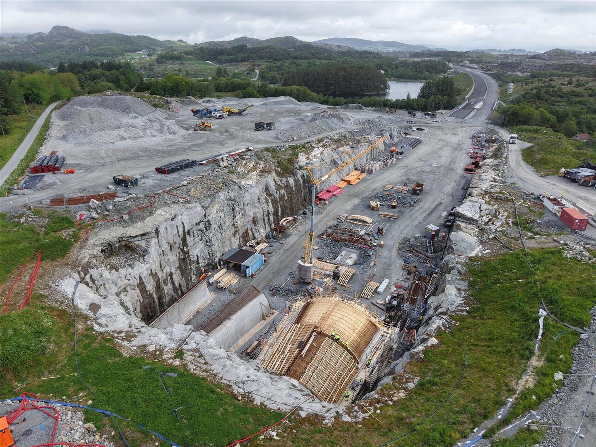 På Laupland er dei i gong med støyping av portalane til tunnelløpa.