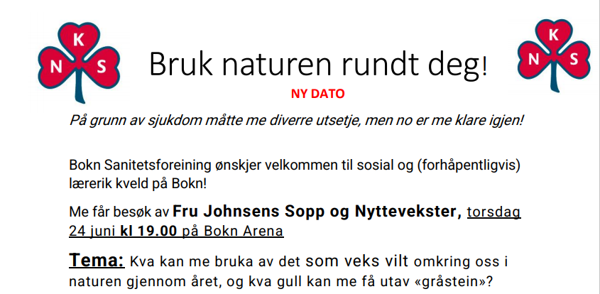 Sosial kveldBilde frå plakaten. Jardar Havikbotn Bokn sanitetsforening ønsker velkommen til sosial kveld i Bokn Arena, torsdag 24. juni kl. 19.00.Sjå meir info her (PDF, 145 kB) Publisert av Jardar Havikbotn Publisert 18.06.2021 10.16