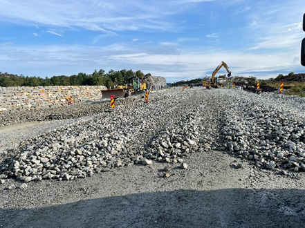 I dagsona, frå kryss med eksisterande E39 og ein kilometer mot tunnelopninga, er det stor aktivitet med klargjering for asfaltering som startar no.
