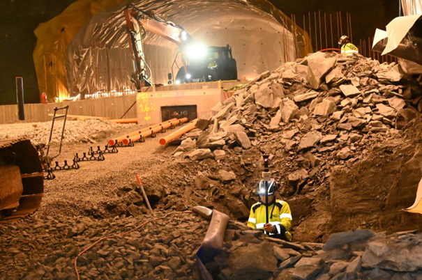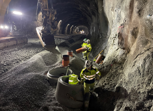 Grunnarbeid for teknisk bygg i tunnelen.