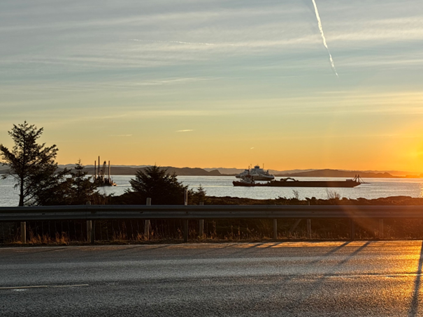 Lektertransport i solnedgang ved Arsvågen.