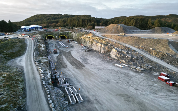 Tunnelinngangen ved Laupland der det no er starta arbeid med betongportal.