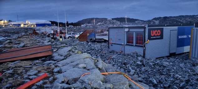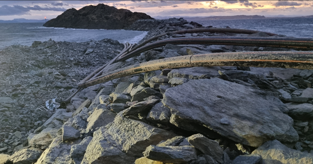Også hos oss herjet stormen Eown. Moloen som brukes for utskiping av tunnelmasser fikk moderate skader. På yttersiden ble mye stein kastet opp og innover mot brakkene, mens utvasking var problemet på innsiden.