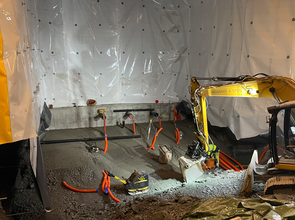 Nede i tunnelen foregår det også andre typer arbeid. Etablering av pumpestasjoner, betongarbeider i tverrslag, kabellegging med mer.