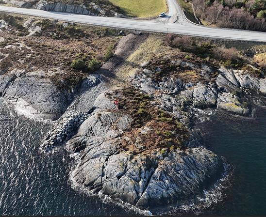 Nedenfor Arekrysset (siste kryss før Arsvågen) er det etter nyttår pågått arbeid, både fra lekter og på land. Her er det nå lagt ned en utslippsledning. Denne vil bli tatt i bruk når tunnelen står ferdig. I bergrommet i tunnelen vil det også etter ferdigstillelse være noe saltvann som trenger inn. Dette vannet blir samlet opp i ulike basseng (ser ut som hestesko som vist i bilde nr. 2 over). Fra disse bassengene blir vannet pumpet opp av tunnelen og ført videre ut i sjøen nedenfor Arekrysset.