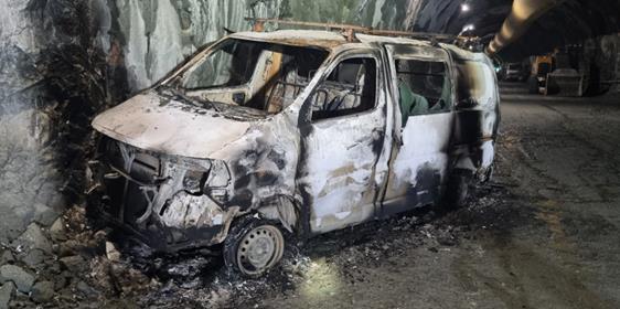 På kvelden den 21. februar tok det fyr i en Toyota Hiace nede i det vestlige løpet. Hendelsen skjedde i overkant av 5km inne i tunnelen. Det var syv personer som på tidspunktet jobbet noen hundre meter foran brannen. Disse nyttet ett av tverrslagene som går mellom de to løpene til evakuering. Totalt var det 12 personer i tunnelen, men de fem øvrige jobbet nærmere tunnelåpning. Nødetater ble varslet så snart personene var ute av tunnelen og en hadde stabile mobilforhold.
