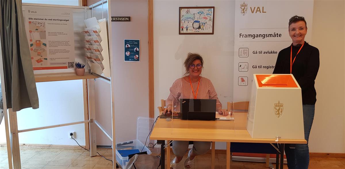 Ta kontakt med valfunksjonærane som har rigga seg til med valavlukke og utstyr utanfor Allrommet dersom du ønsker å stemme.