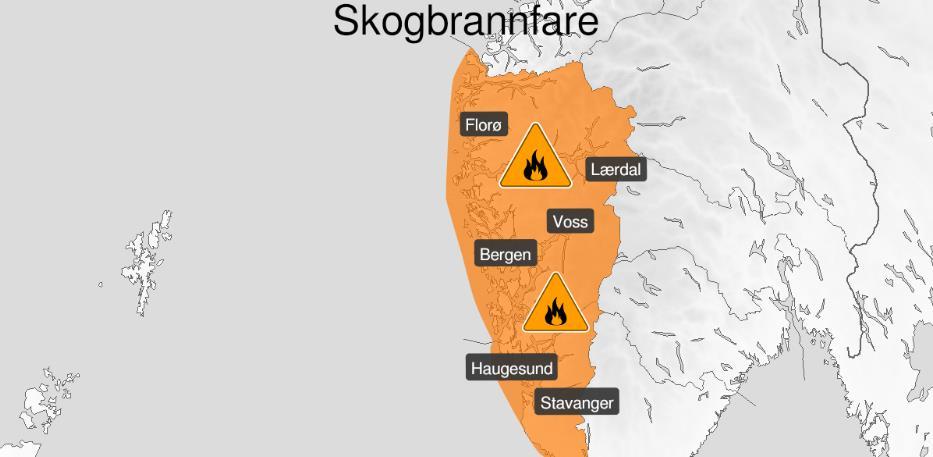 Stor skogbrannfare varsom.no Kombinajonen av vind og ingen nedbør gir lokalt stor gras- og lyngbrannfare til det kjem nedbør av betydning. Les meir her Publisert av Jardar Havikbotn Publisert 25.04.2022 17.20