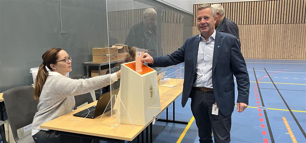 Ordførar Egil Våge røysta kl. 9 i Bokn Arena.