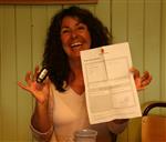 Alicia Jopia med køyrebevis.Målsettinga til Bokn vevstove har heile tida vore å driva tradisjonen vidare, med stor vekt på det sosiale. Etter ein interessant handarbeidstime med mykje nostalgi og lått og løye, vil eg aldri vera i tvil om det stemmer. I den godt samansveiste gjengen kjem både kunnskapen, smilet og latterkulene tett.