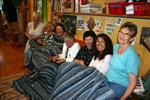 Ei som bidrar sterkt til ei humørfylt stund er den yngste i flokken, Alicia Jopia. Denne kvelden var ho også i ekstra godt humør, etter å ha fått sertifikat same dag - gratulerer! Ho har vore med og vove i sju år og kunne ingenting då ho begynte. Alicia fortel at ho synest det er fantastisk å vera vevkjerring. Dei andre skryter veldig av henne og seier ho lærer fort.