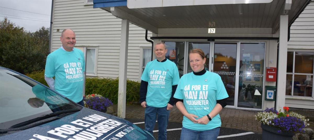 Ordførar Osmund Våga, Bianca Alvestad og Jardar Havikbotn i kommunekomitéen håpar på stor givarglede i dag, og ønsker alle ein fin TV-aksjonsdag!