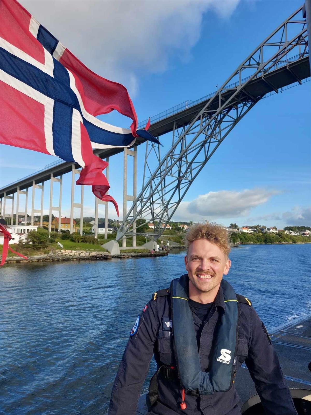 Jonas Løvereide Faye (24) er utdanna cyberingeniør i Forsvaret og jobbar som nettverksbefal på båten. Nå er han snart ferdig med sitt første av tre pliktår. Han fortel at dei har ein besetning på rundt 25 stk. og var nå på veg til Ramsund, som i framtida blir basestasjon for Noregs nye ubåtar.