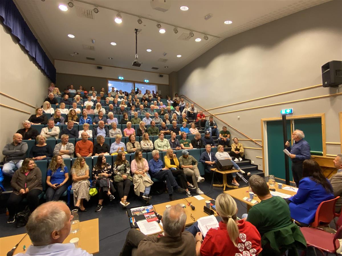 Auditoriet med 90 faste seter blei smikkfullt då over 100 personar møtte opp. Spesielt gledelig var det med alle ungdommane og deltaking frå ungdomsrådet.