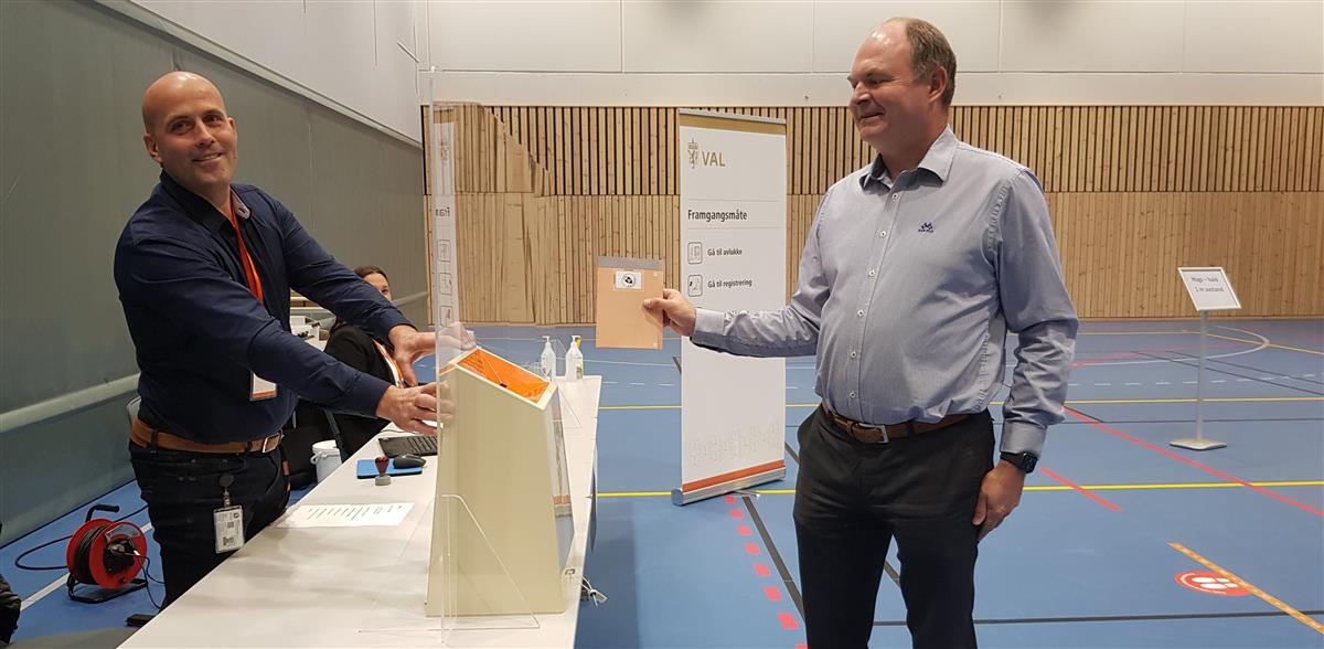 Ordførar Osmund Våga røysta kl. 09:14 i Bokn Arena.