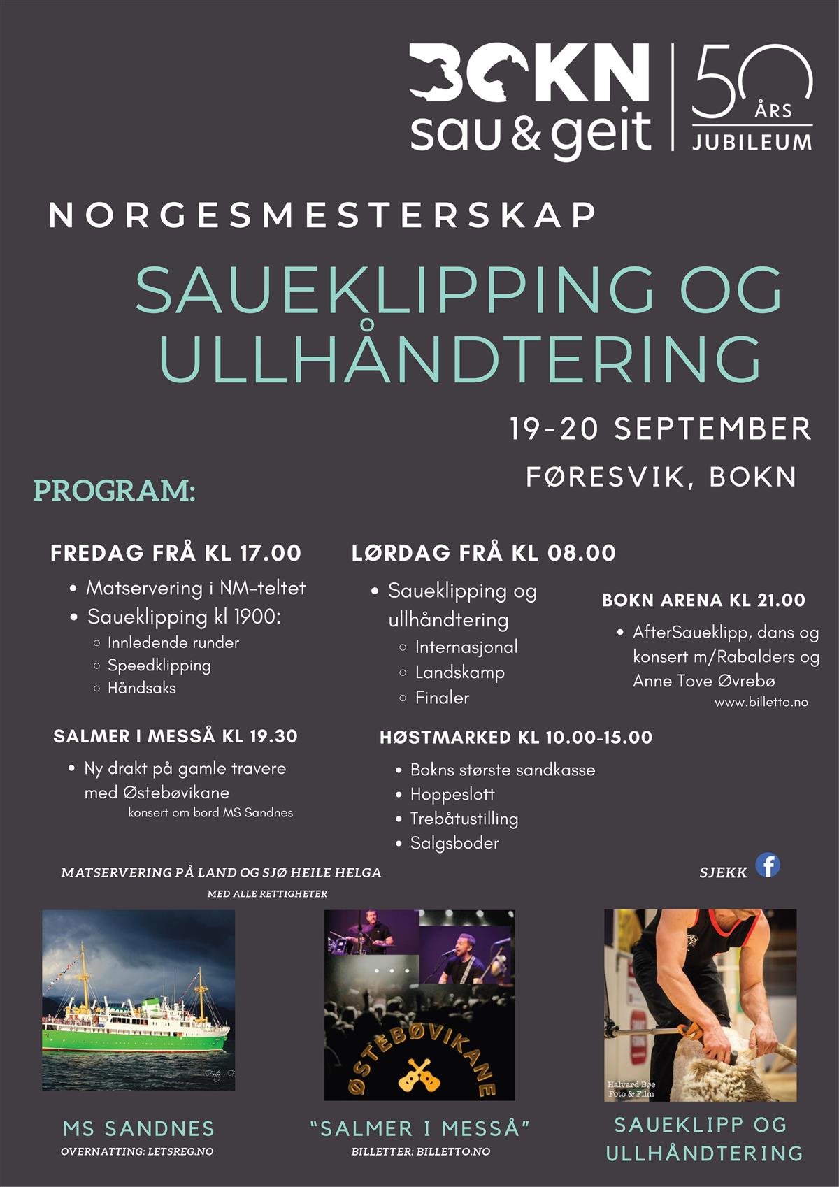 -Me er 50 år i år og feirar to dagar til endes på Bokn, ein av Noregs minste kommunar med litt over 900 innbyggjarar, med verdens beste NM i saueklipping og ullhåndtering!
