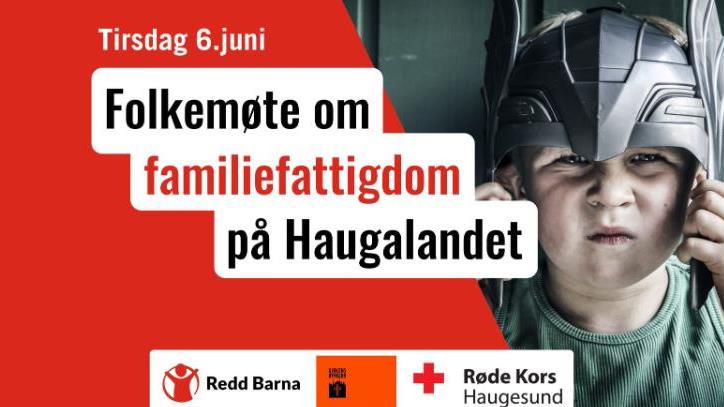 Familiefattigdom på Haugalandet Redd Barna Haugalandet, Haugesund Røde Kors og Kirkens Bymisjon inviterer til folkemøte, tirsdag 6. juni i Quality Hotel Maritim kl. 18.30 - 20.30. Publisert 25.05.2023 kl. 14.02