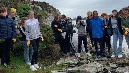 Flinke skuleelevar 2! Strandryddeveka held fram. Torsdag 16. september var ungdomsskuleelevar i Kråkevågen og rydda. Publisert 17.09.2021 kl. 11.15