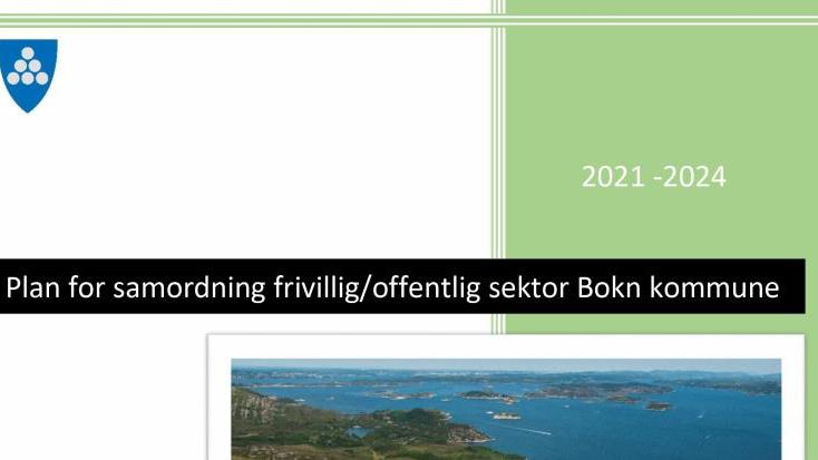 Plan på høyring Jamfør vedtak i FS- sak 068/21 blir planforslaget «Plan for samordning frivillig/offentlig sektor Bokn kommune 2021-2024» lagt ut på høyring med høyri... Publisert 03.09.2021 kl. 13.51