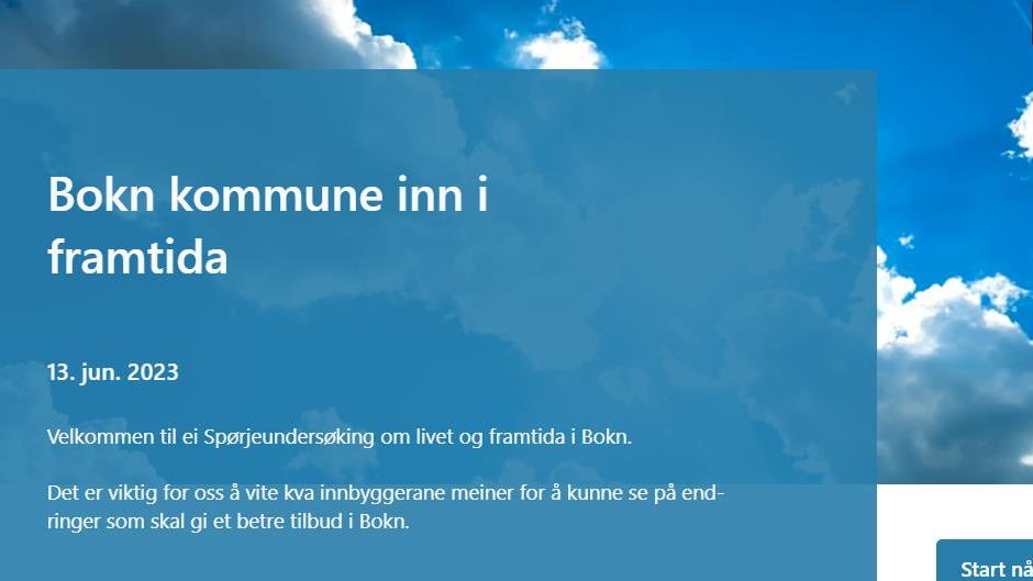 Spørjeundersøking om livet og framtida i Bokn Velkommen til ei undersøking om kva folk meiner om å bu og arbeide i Bokn.
